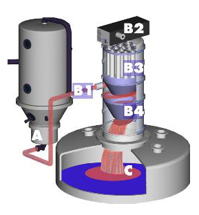3、氣動控制器控制真空泵B2關(guān)閉時,輸送器內(nèi)的壓力達(dá)到平衡,物料經(jīng)出料倉B4輸送到料倉C的位置。